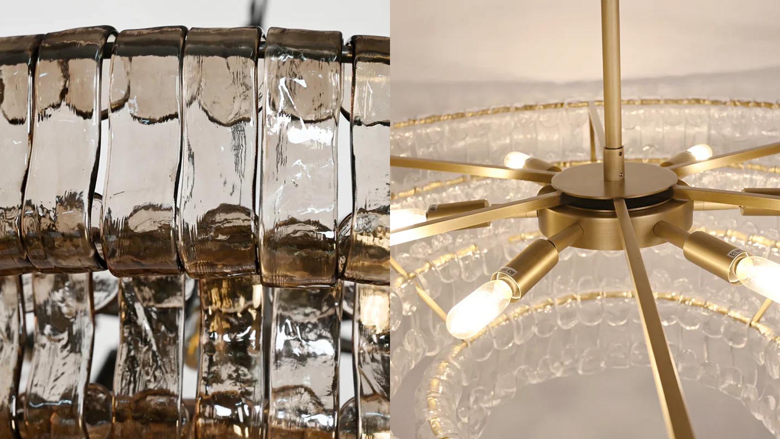 The sculptural glass elements appear almost carved rather than manufactured, introducing a sense of authenticity and uniqueness. When illuminated, light refracts through these textured surfaces, producing a crystalline glow that feels both dynamic and serene.