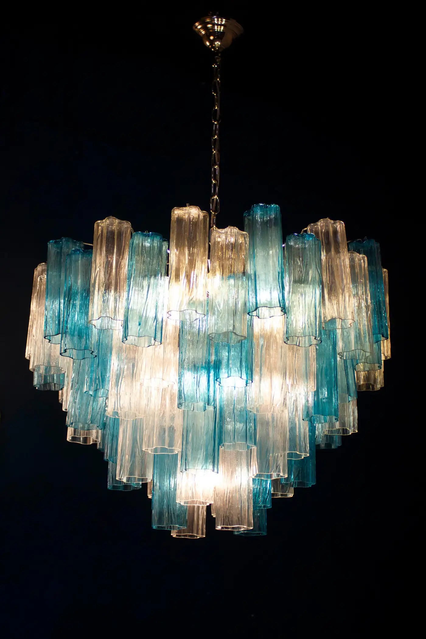 Midcentury Blue and Clear Murano Glass Tronchi Chandelier