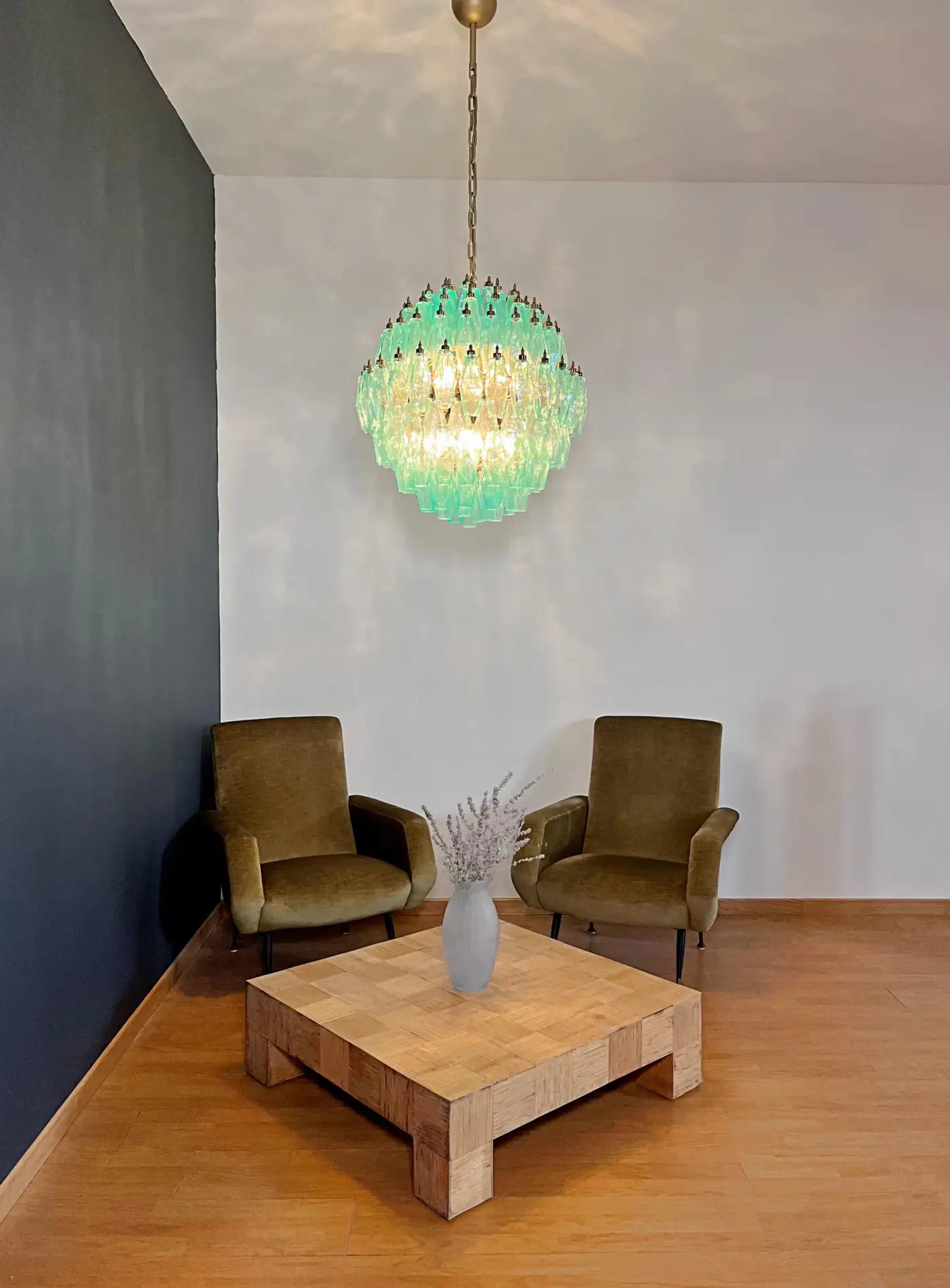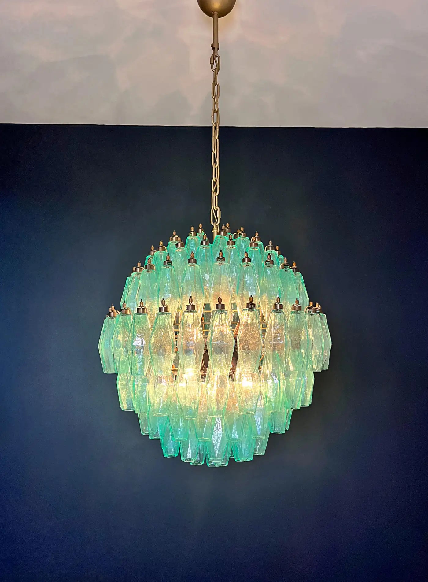 Amazing spherical Murano polyhedrons Chandelier - 140 turquoise polyhedrons