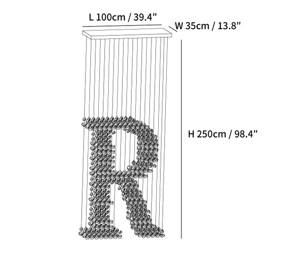 Letter R Size: L100cm x W 35cm x H 250cm / L 39.4″ x W 13.8″ x H 98.4″