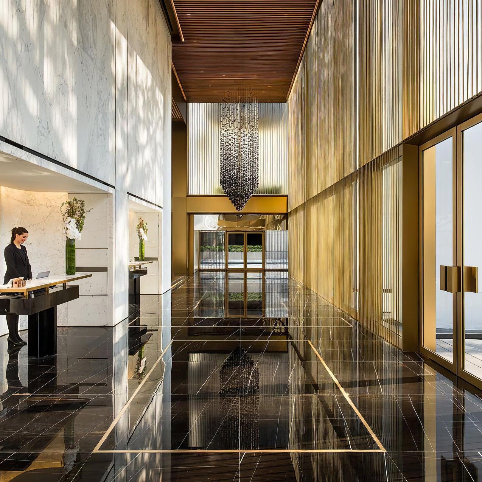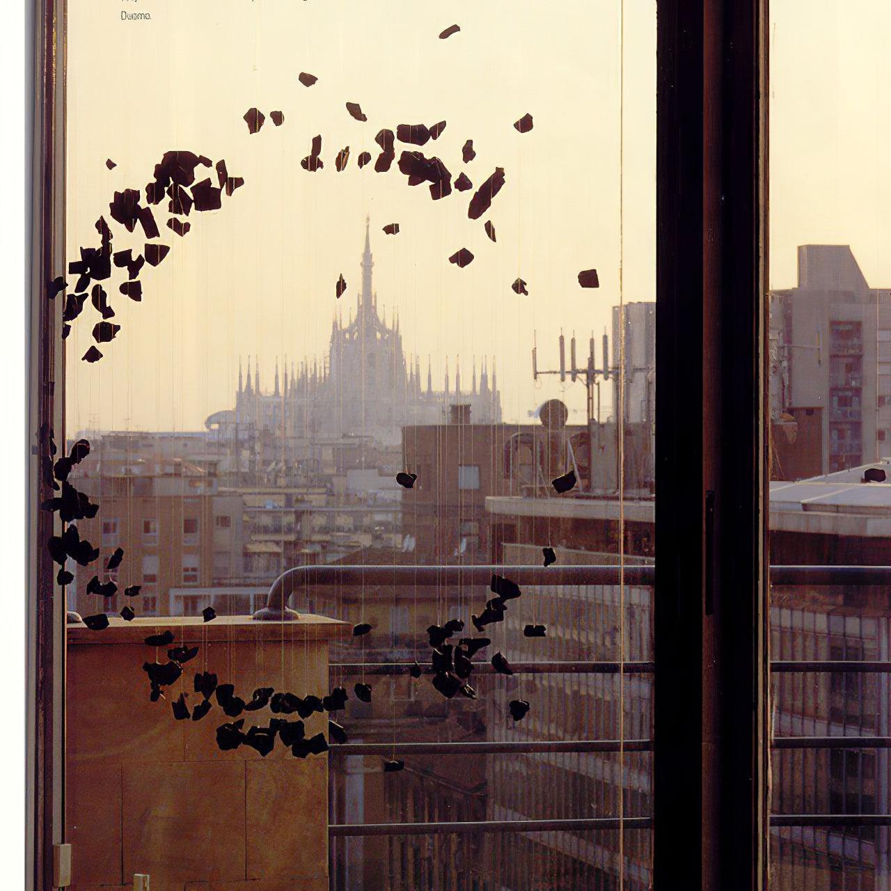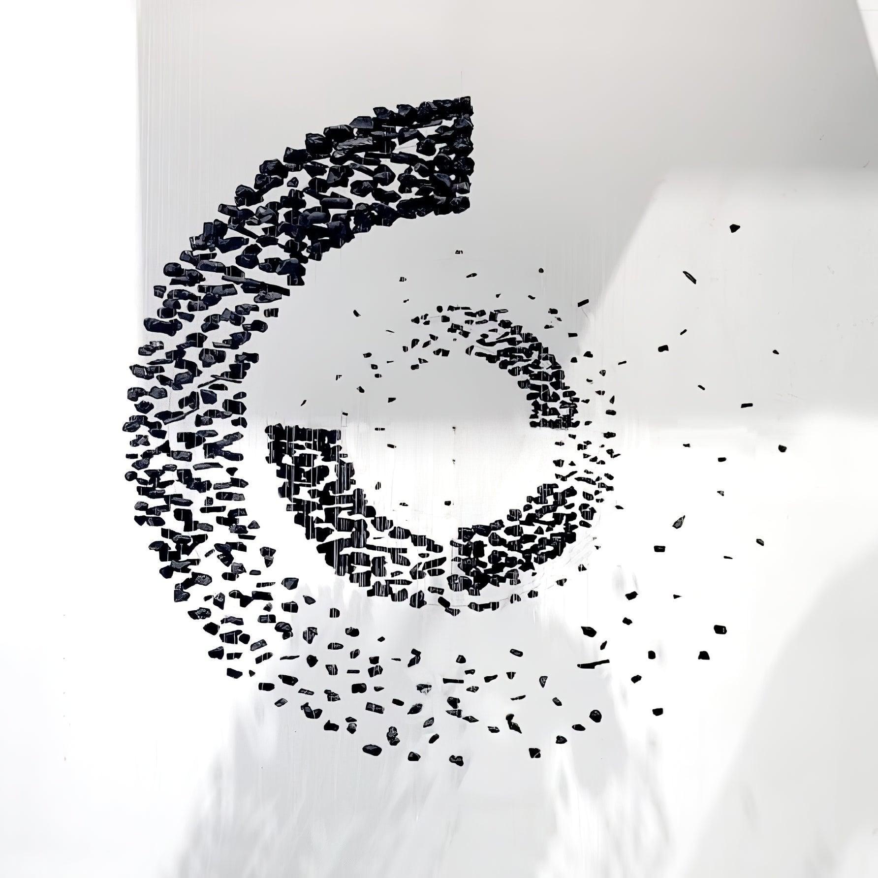 Starting with one piece of charcoal, the artwork crafted for this chandelier extends into a linear composition before spreading to occupy the area, conveying the idea that everything is connected and the universe can be found in a single point. The concept is concise and understandable.