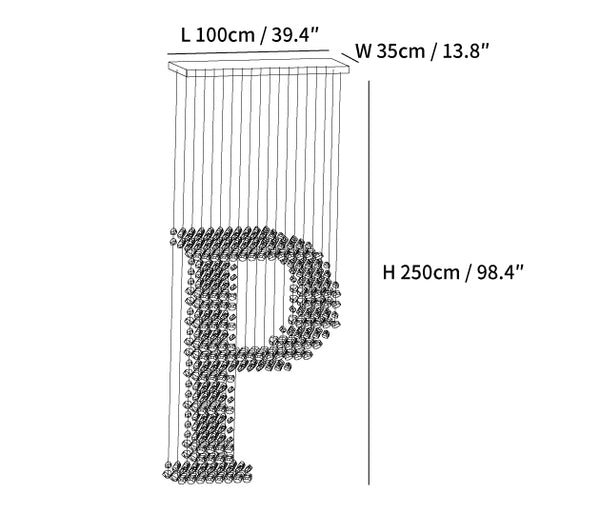 Letter P Size: L100cm x W 35cm x H 250cm / L 39.4″ x W 13.8″ x H 98.4″