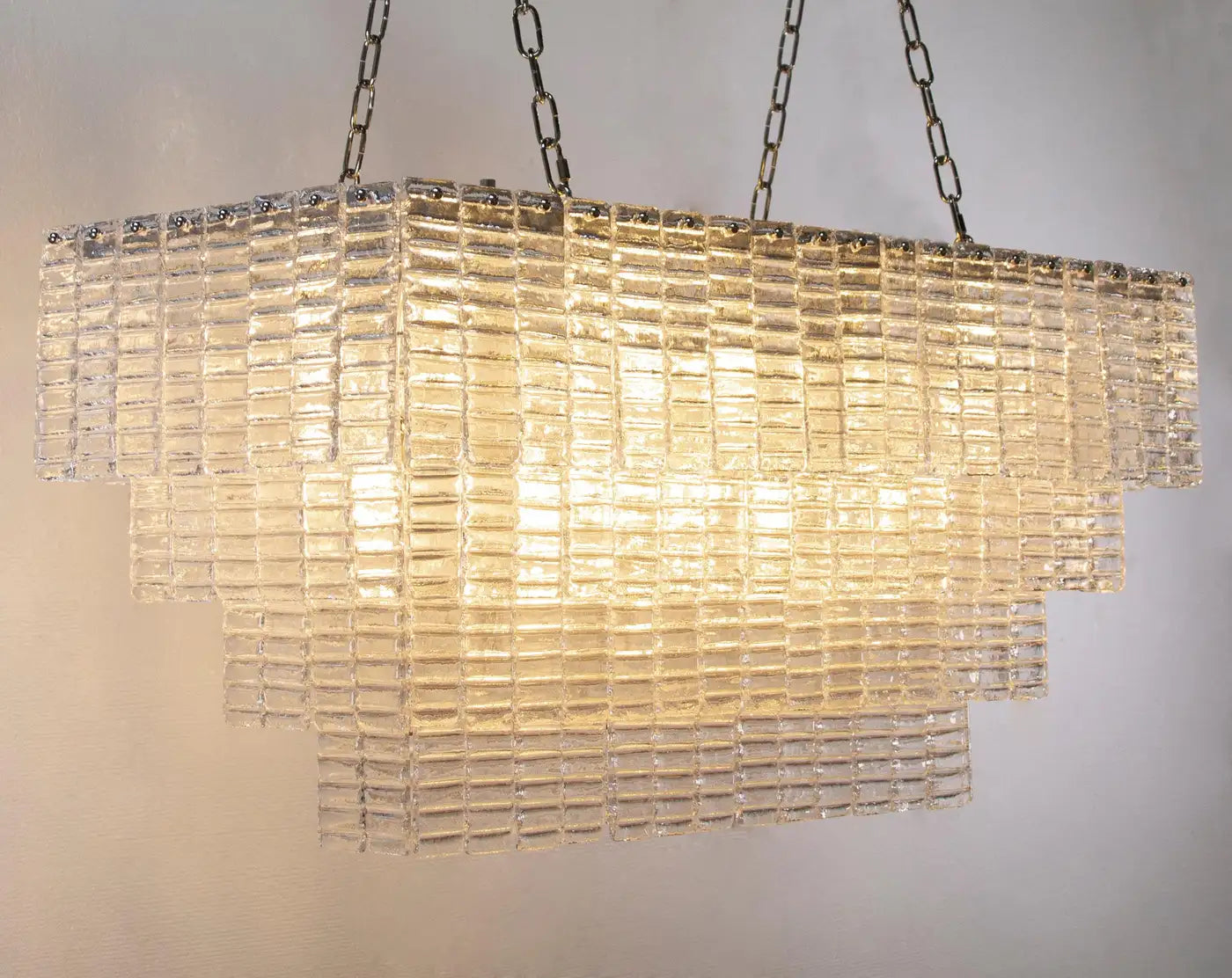 Grande lampadario con listelli vetro di Murano ispirato al mid-century italiano