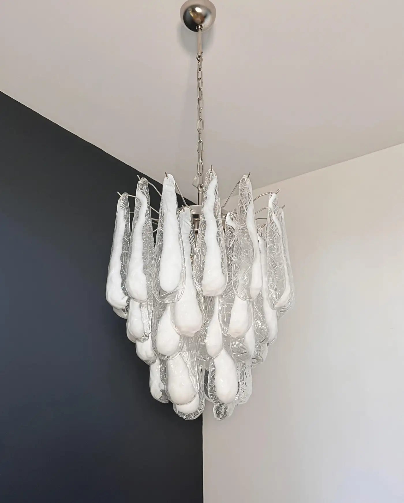 Italian Vintage Murano Chandelier 41 Glass lattimo Petals Drop
