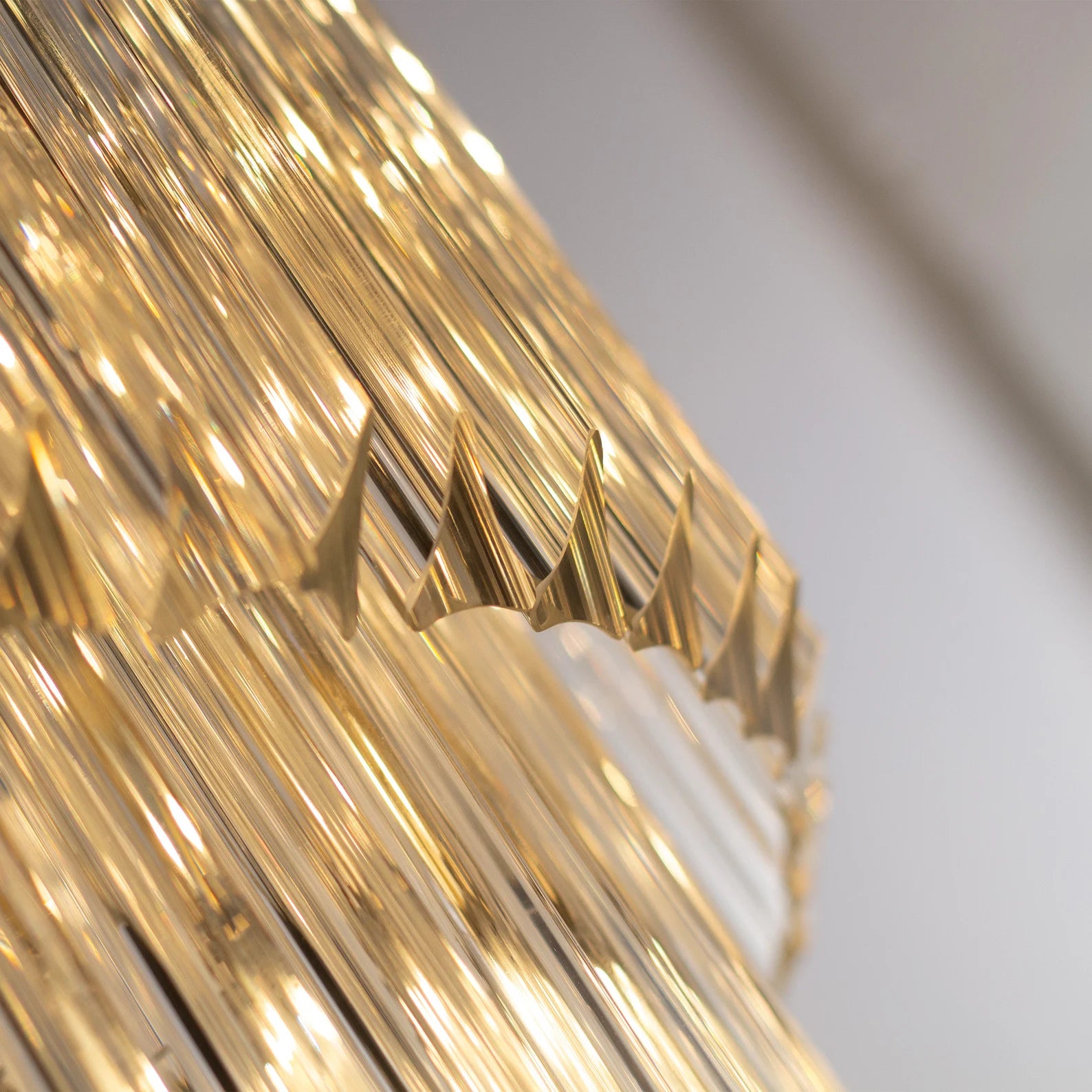 More than just a light fixture, it is a masterpiece suspended in time. Each crystal is precision-cut to capture and dance with every ray of light. When evening falls, it transforms your room into a sanctuary of brilliance and grandeur, defining the very essence of high-end living.