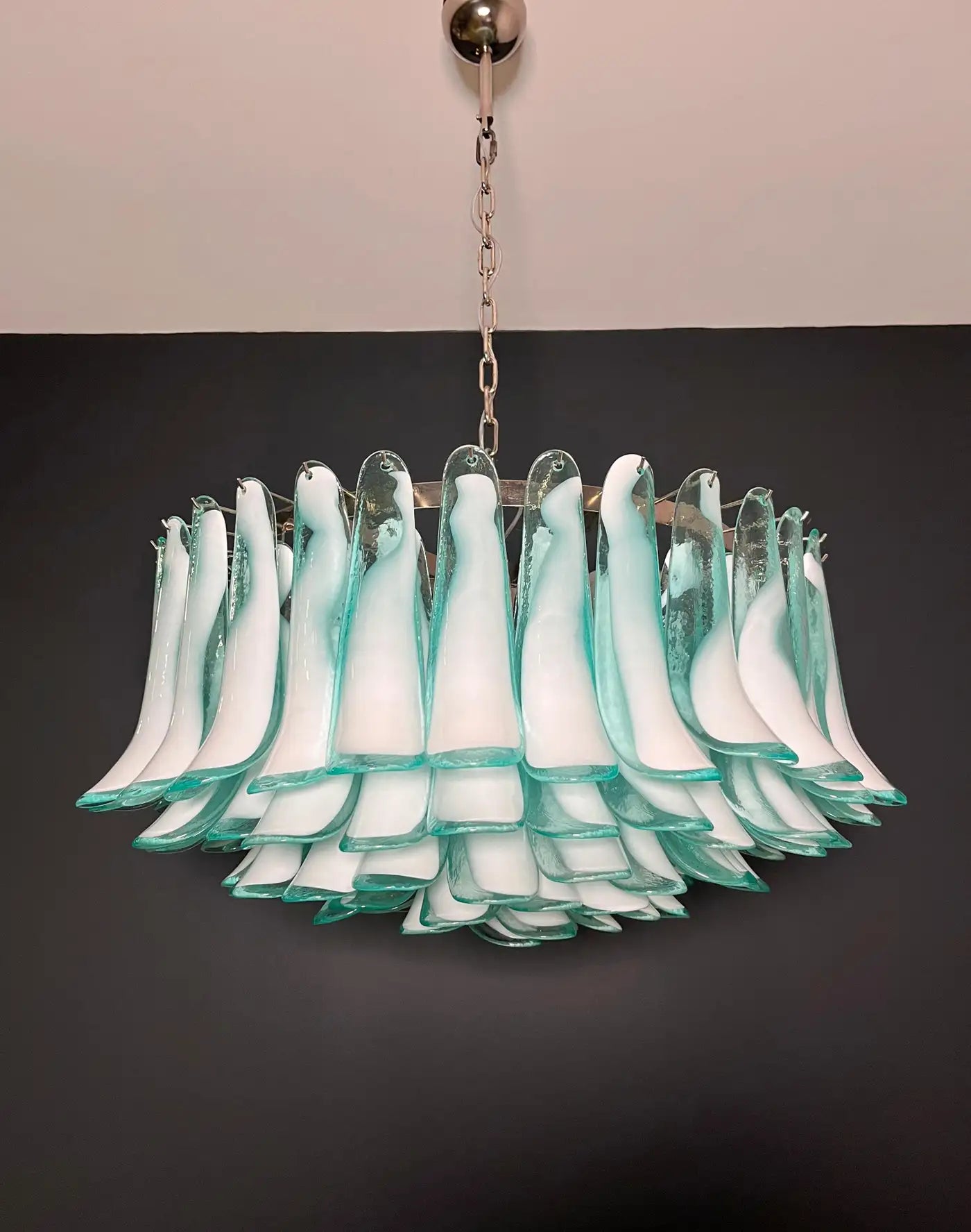 Large Murano glass Chandelier -101 turquoise lattimo glass petal