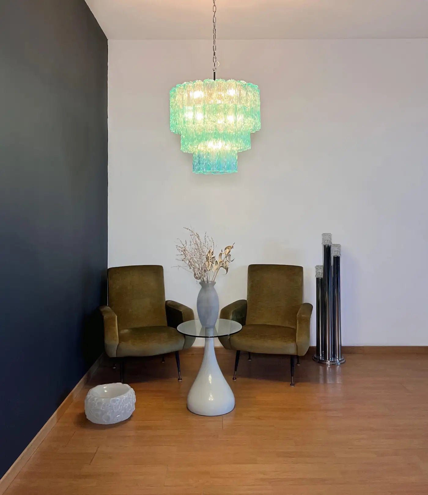 Large three-Tier Venini Murano turquoise Glass Tube Chandelier