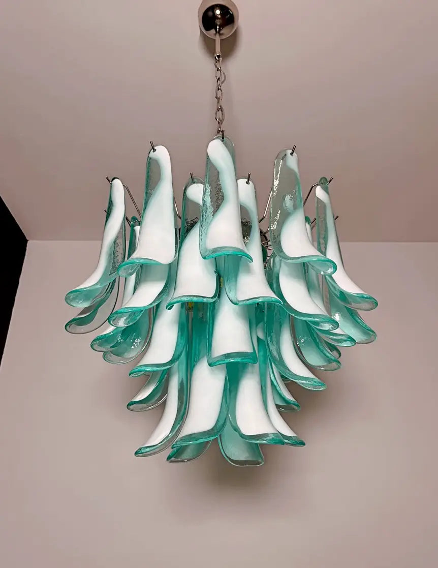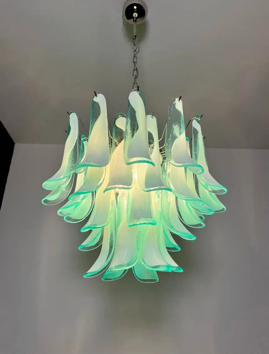 Murano Chandelier 36 Turquoise Petal Glass