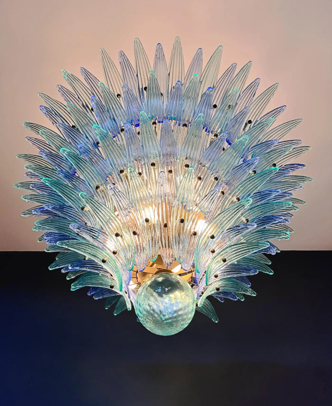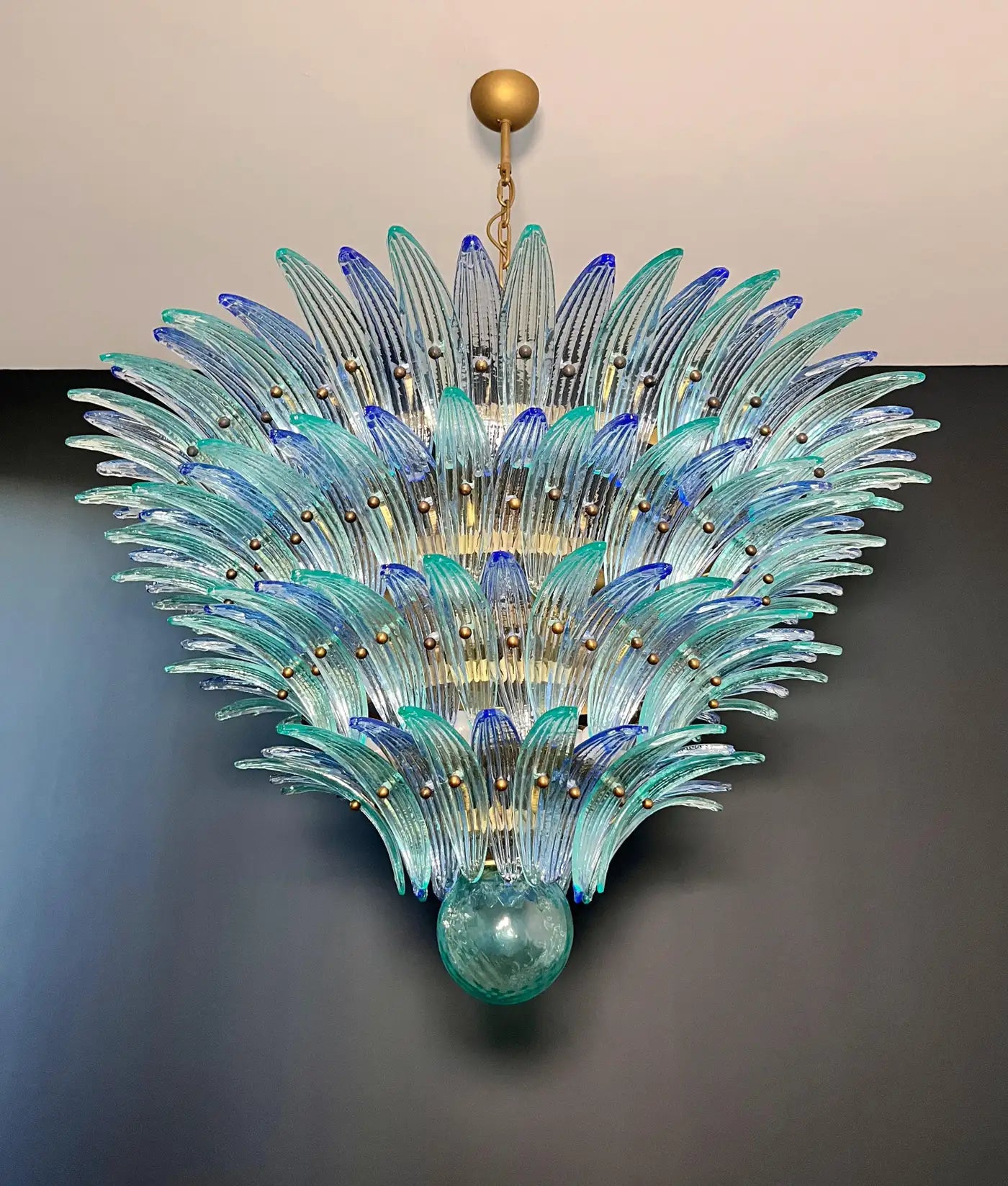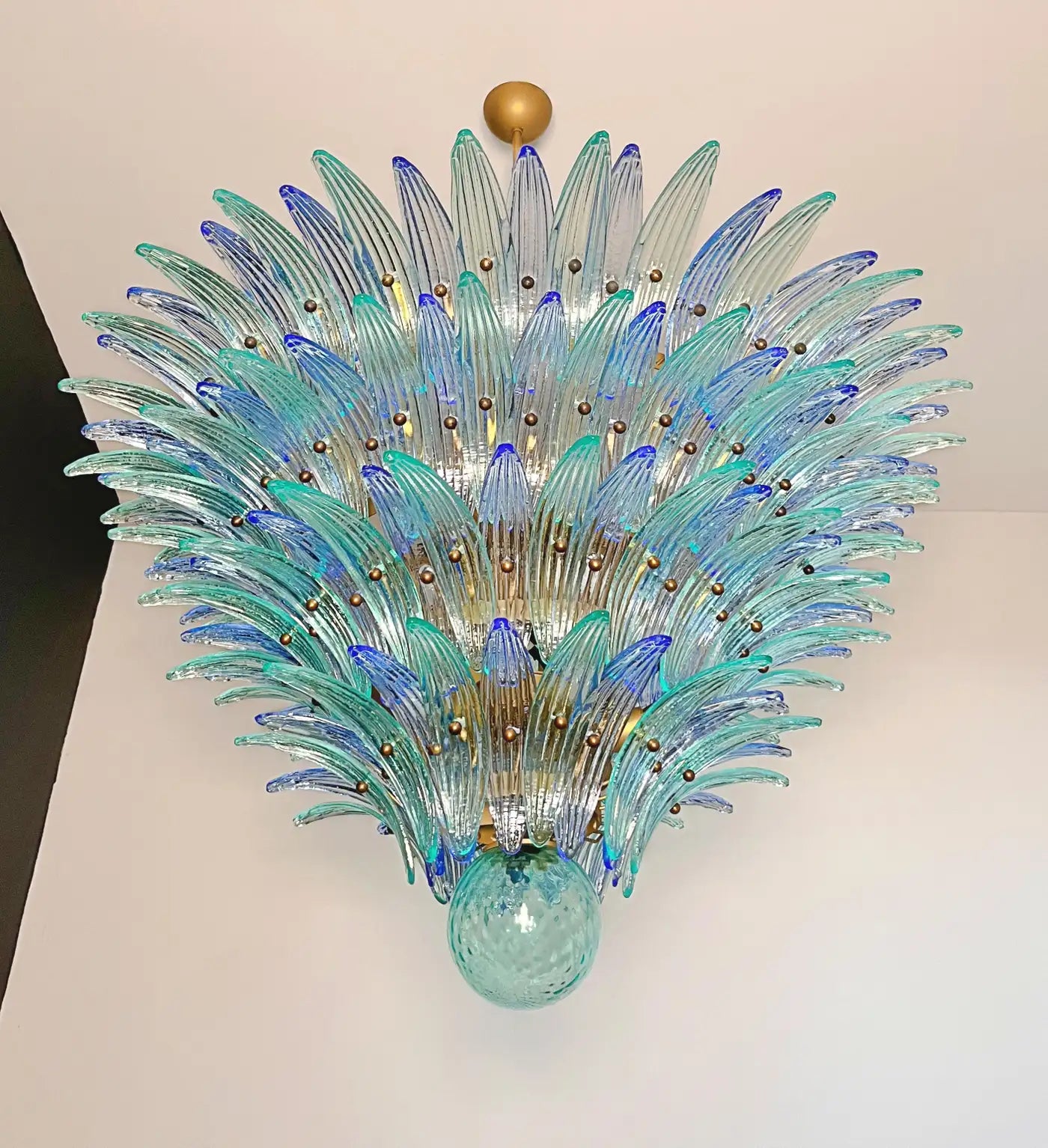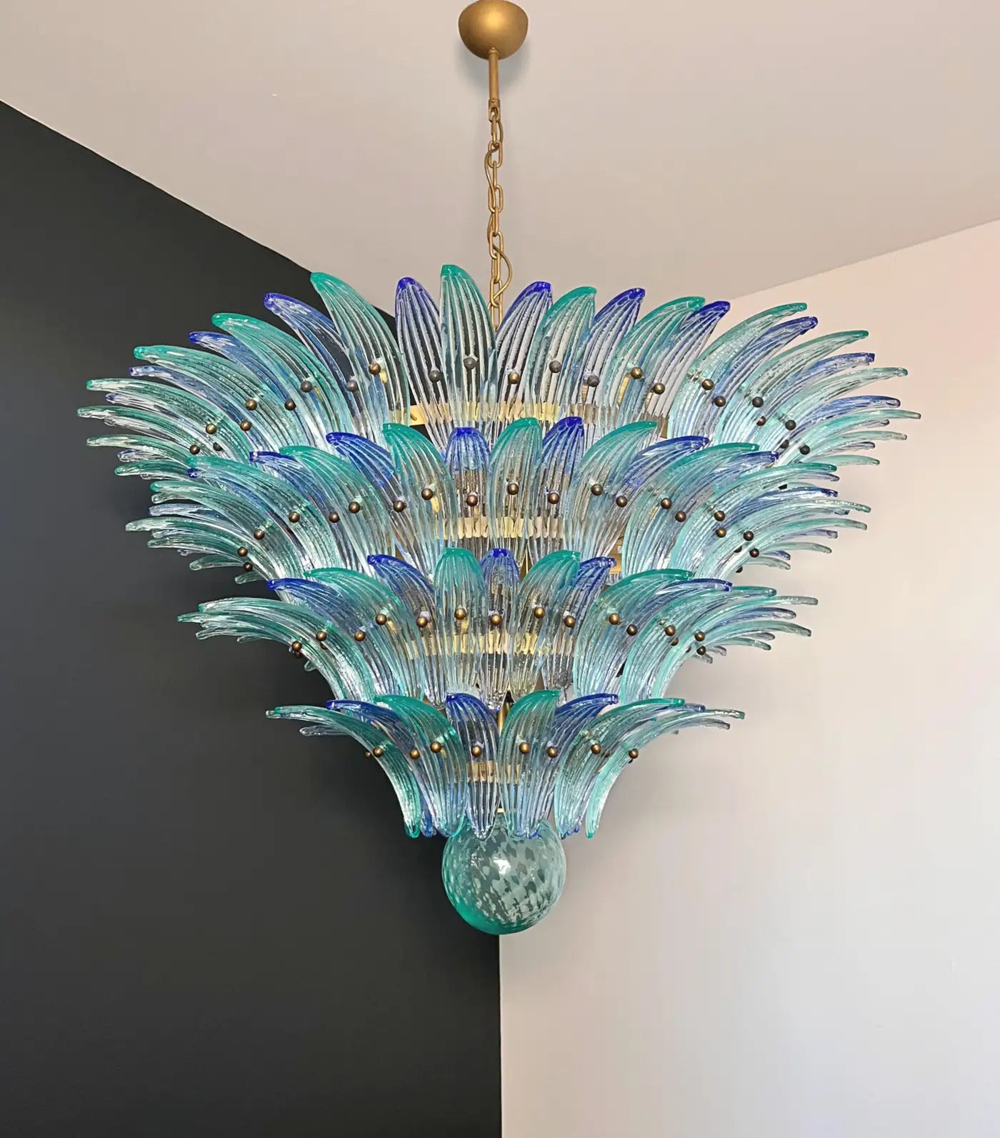 Palmette Ceiling Light - four levels, 160 blue and turquoise glasses