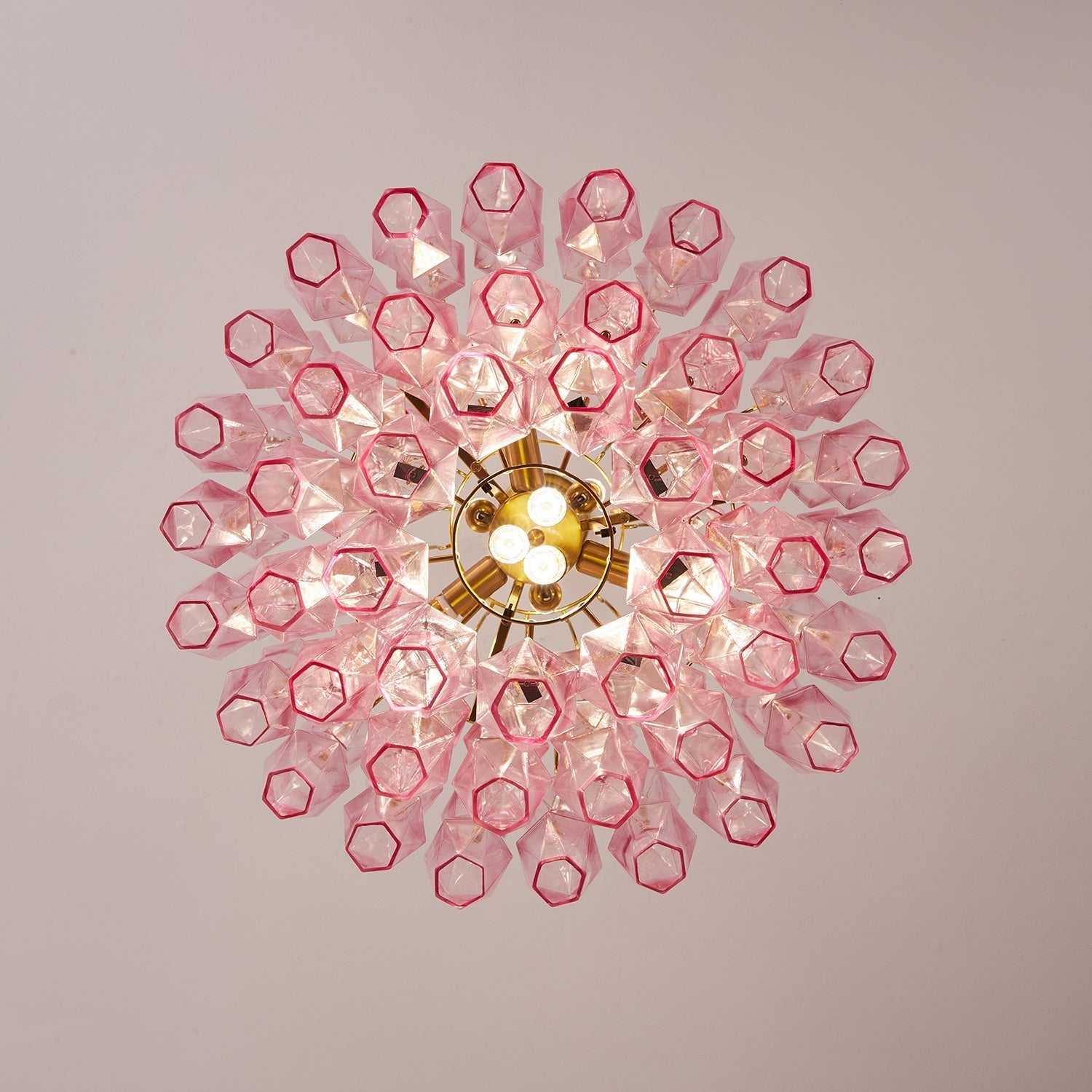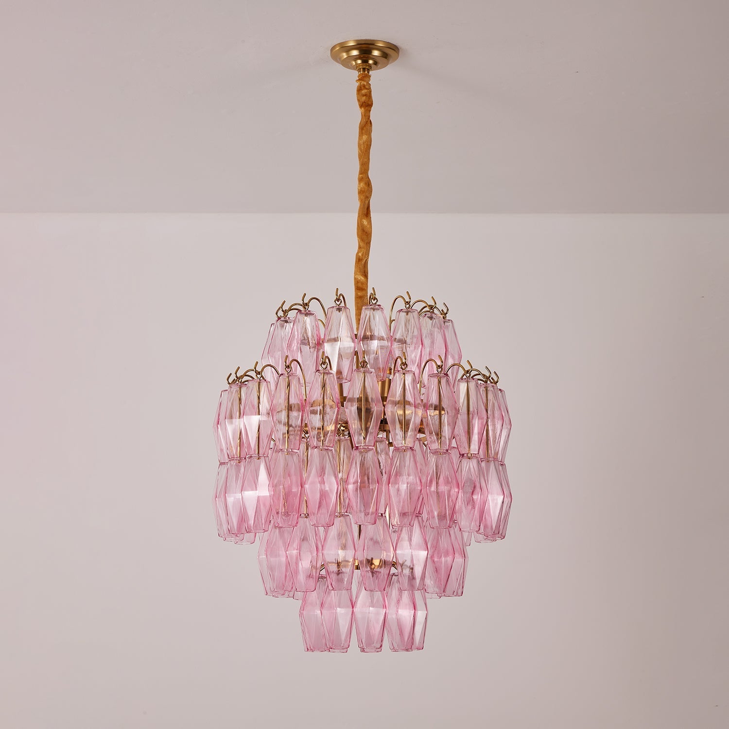 The Decorluxelife Pink Murano Glass Prism Chandelier is a stunning centerpiece that blends timeless elegance with modern artistry. Featuring tiers of hand-blown Murano glass prisms in a soft pink tone, this chandelier captures and reflects light with dazzling brilliance. Each glass piece is suspended from a polished brass frame, adding a luxurious and sophisticated touch. The twisted brass stem and ceiling canopy complete the design, making it ideal for adding glamour to dining areas, living rooms, or grand entryways. A true statement piece from Decorluxelife, crafted to elevate any interior with refined beauty and charm.