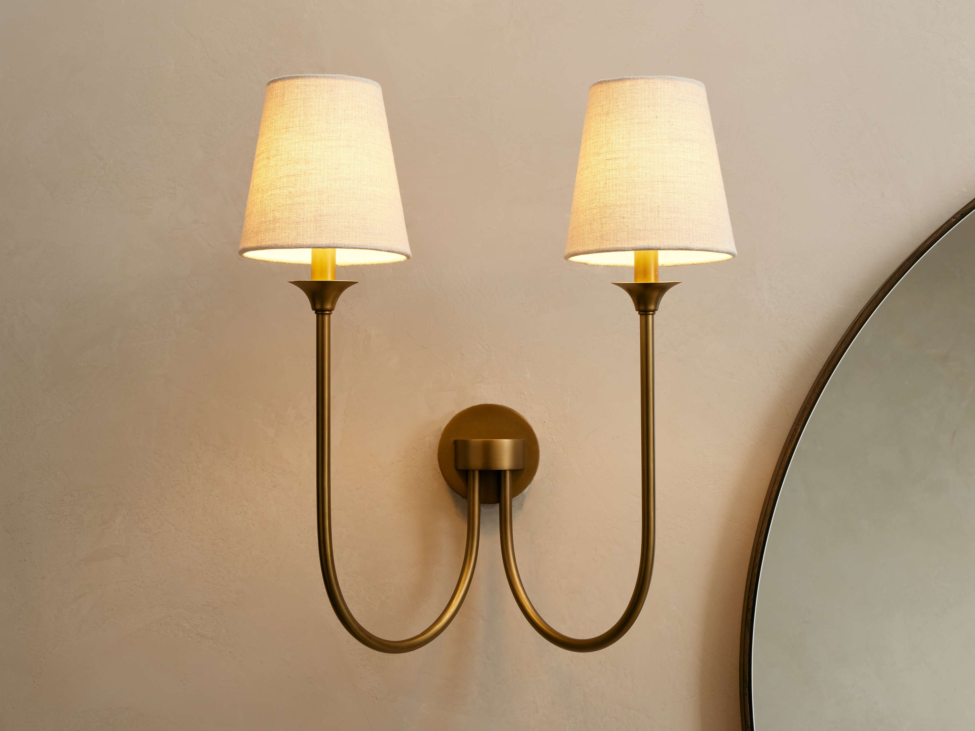 Pairing timeless curves with crisp shades, our Saige Lighting Collection brings a warm, traditional aesthetic that’s reimagined in modern brass or bronze finishes to complement your home décor style.