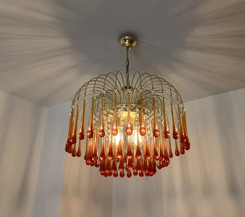 Elevate your space with a touch of vintage charm with our Murano Teardrops chandelier from the 1970s. We brought this chandelier home from our last trip to Italy and it has hung for many years with an Italian couple.